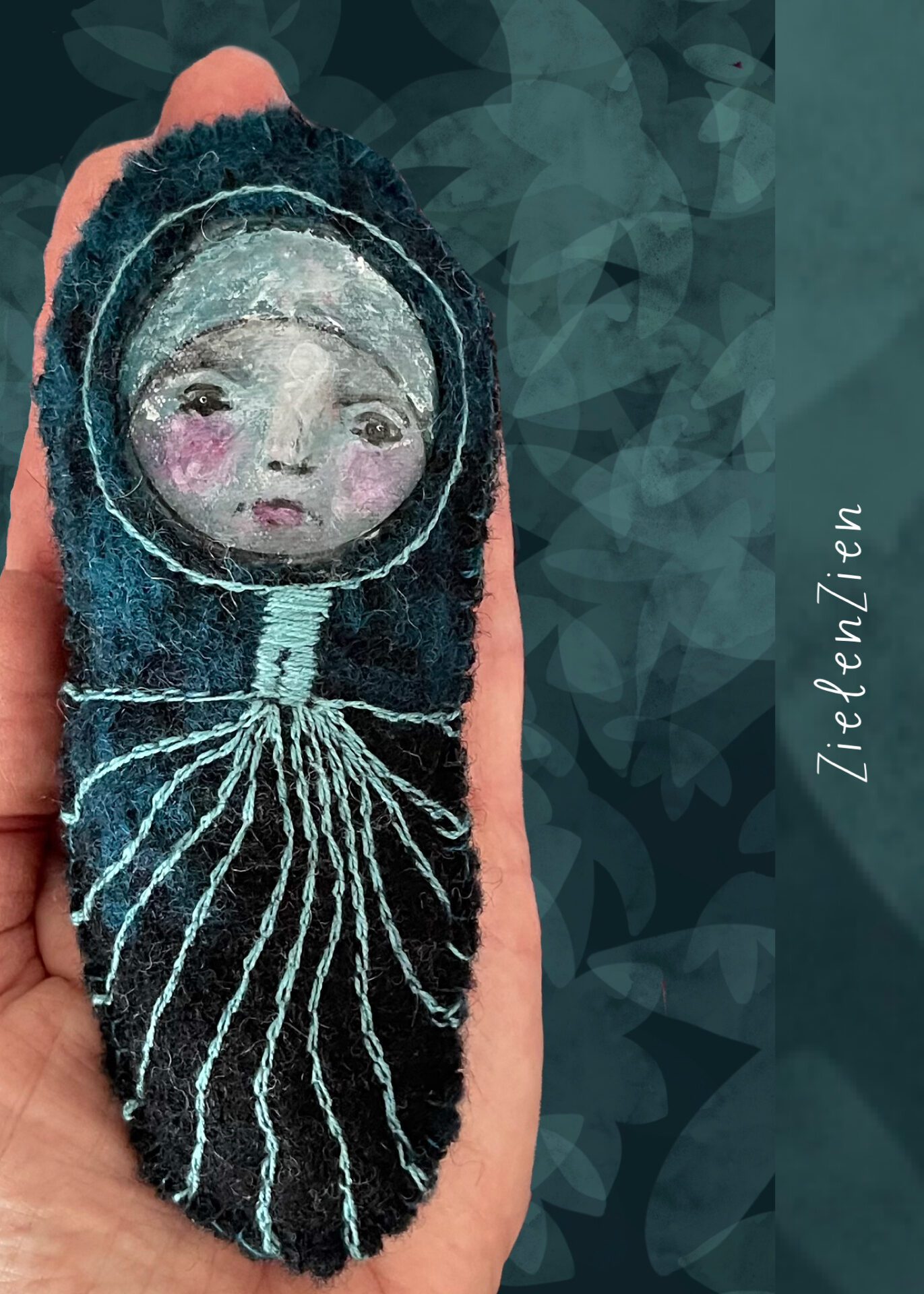 Wora is een echte zielenknuffel. Ze is met liefde en zorg uniek handgemaakt. Haar lijfje is gemaakt van wolvilt en gevuld met 100% katoen. Haar gezichtje is handgeschilderd op een linnen cirkeltje van 3,5 cm.